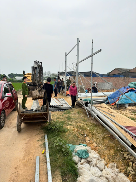 Qua kiểm tra thực tế tại thôn Nội, xã Vĩnh Hưng, một hộ gia đình trên địa bàn đã có hành vi vi phạm trong quá trình sử dụng đất. Sau khi được Tổ phản ứng nhanh của UBND xã tuyên truyền, giải thích các quy định của pháp luật về đất đai và vận động chấp hành, gia đình đã nhận thức rõ hành vi vi phạm của mình và tự giác tháo dỡ công trình vi phạm.