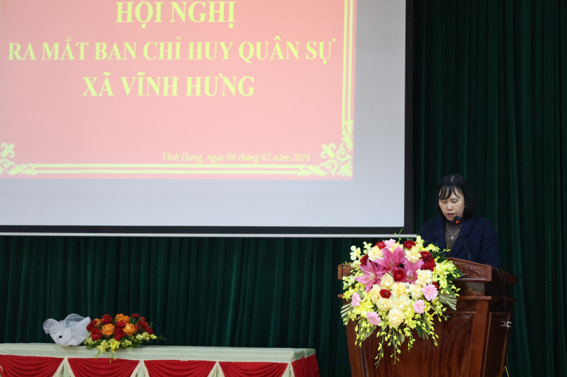 Tại hội nghị, đồng chí Lê Thị Trang - Ủy viên Ban Thường vụ, Trưởng phòng Văn hóa – Xã hội xã đã công bố các quyết định liên quan đến việc kiện toàn Ban Chỉ huy Quân sự xã Vĩnh Hưng. Việc kiện toàn Ban Chỉ huy Quân sự xã có ý nghĩa quan trọng, bảo đảm sự lãnh đạo, chỉ đạo thống nhất trong thực hiện nhiệm vụ quốc phòng – quân sự tại địa phương, đáp ứng yêu cầu nhiệm vụ trong giai đoạn hiện nay.