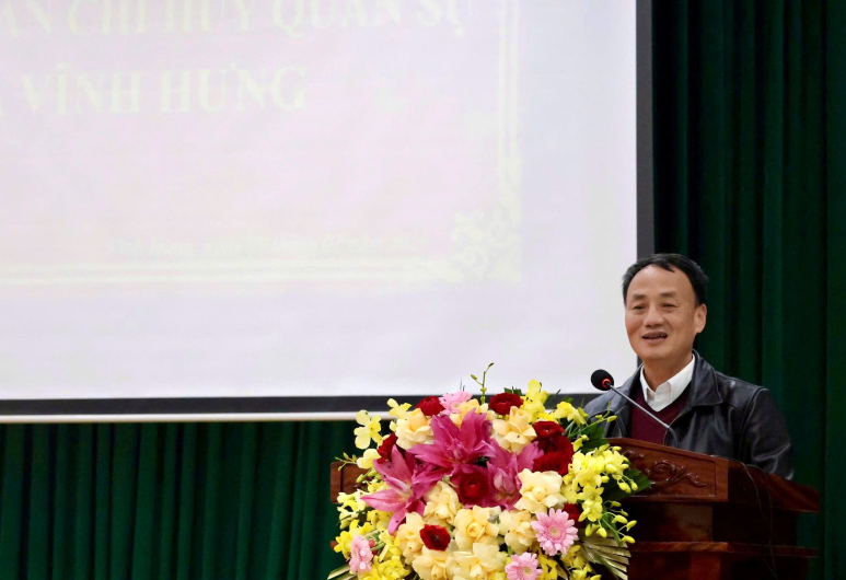 Đồng chí Nguyễn Cao Bắc - Chỉ huy trưởng Ban Chỉ huy Quân sự xã Vĩnh Hưng, Bộ Chỉ huy Quân sự tỉnh Phú Thọ đã phát biểu nhận nhiệm vụ