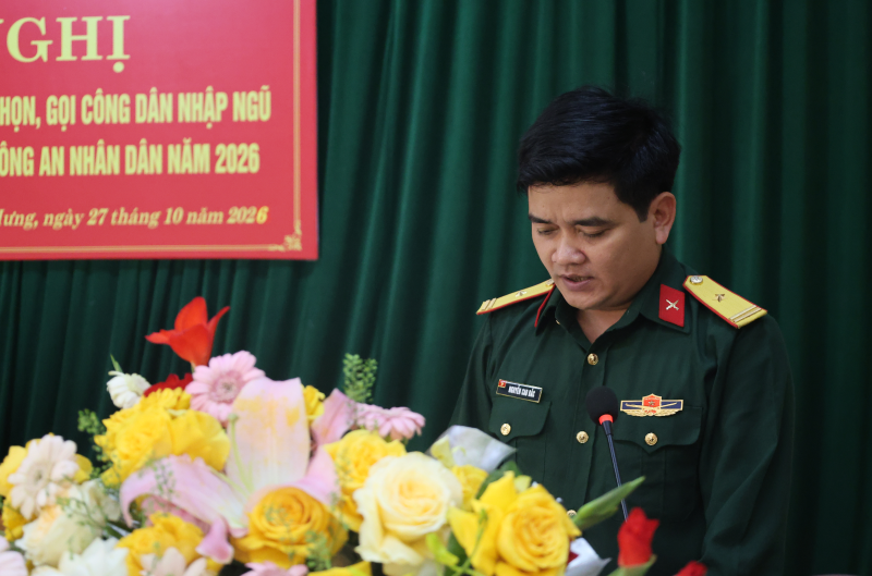 Phát biểu khai mạc Hội nghị, đồng chí Nguyễn Thành Hưng – Chủ tịch UBND xã, Chủ tịch Hội đồng Nghĩa vụ quân sự xã nhấn mạnh công tác tuyển chọn và gọi công dân nhập ngũ là nhiệm vụ chính trị quan trọng, góp phần xây dựng lực lượng vũ trang vững mạnh, đáp ứng yêu cầu bảo vệ Tổ quốc trong tình hình mới. Đồng chí đề nghị các đại biểu phát huy tinh thần trách nhiệm, tập trung đánh giá khách quan, toàn diện kết quả thực hiện nhiệm vụ năm 2026; thẳng thắn chỉ ra những tồn tại, hạn chế, làm rõ nguyên nhân và đề xuất các giải pháp thiết thực, phù hợp với thực tiễn địa phương nhằm nâng cao chất lượng công tác tuyển quân trong thời gian tới.