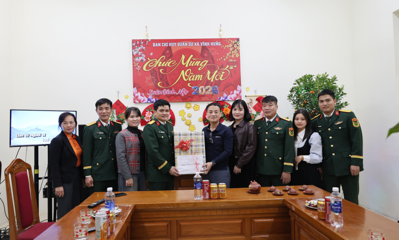 Tối 16/02/2026 (tức ngày 30 tháng Chạp), nhân dịp Tết Nguyên đán Bính Ngọ 2026, đồng chí Nguyễn Thành Hưng – Phó Bí thư Đảng ủy, Chủ tịch UBND xã Vĩnh Hưng đã đến thăm, chúc Tết và động viên cán bộ, chiến sĩ Ban Chỉ huy Quân sự xã. Cùng đi có đại diện các ban, ngành của xã.