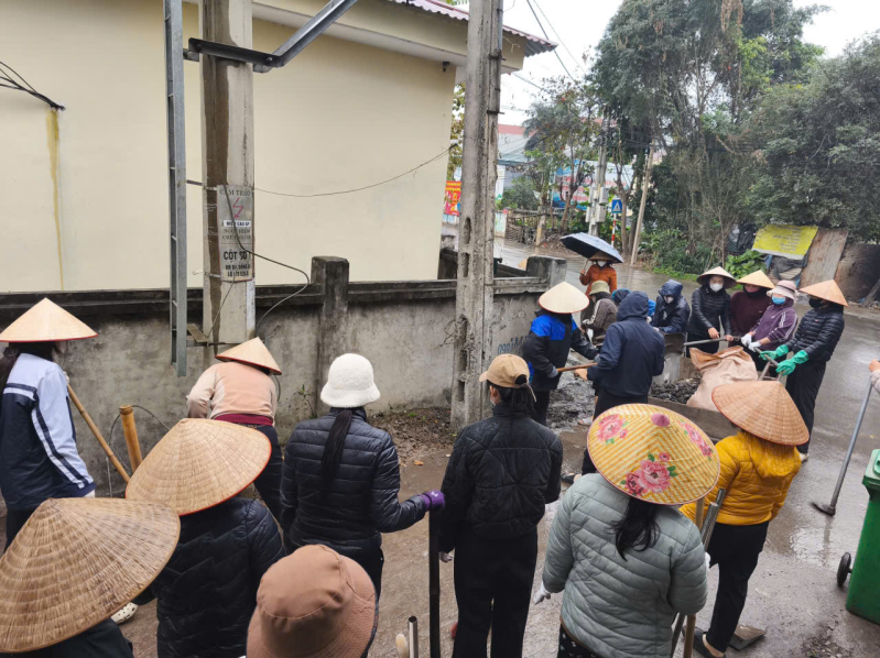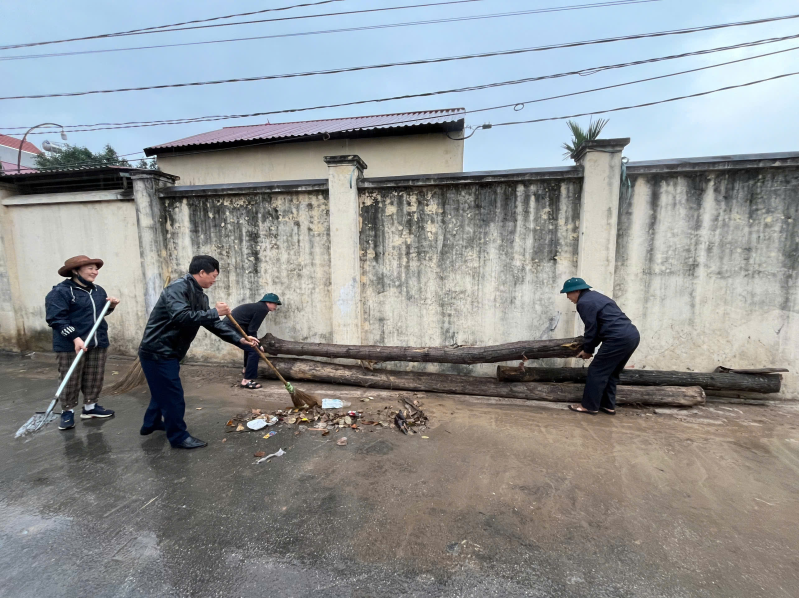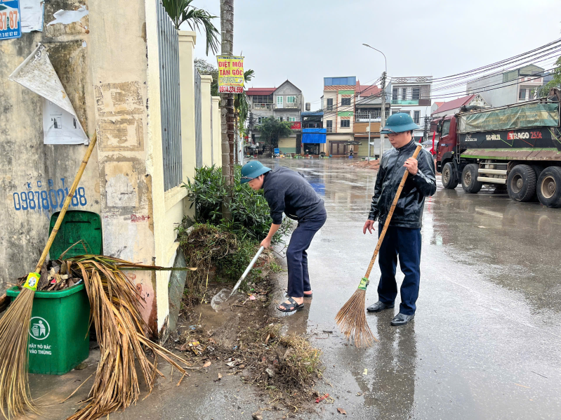 Thực hiện Kế hoạch của Ủy ban nhân dân xã về việc tổ chức dọn vệ sinh môi trường trước, trong và sau Tết, các thôn, xóm đã huy động đông đảo cán bộ, đảng viên và Nhân dân tích cực tham gia. Lực lượng công an, quân sự, các tổ chức đoàn thể, trường học cùng Nhân dân đồng loạt ra quân dọn dẹp tại các tuyến đường trục chính, đường làng, ngõ xóm, khu dân cư và các khu vực công cộng.