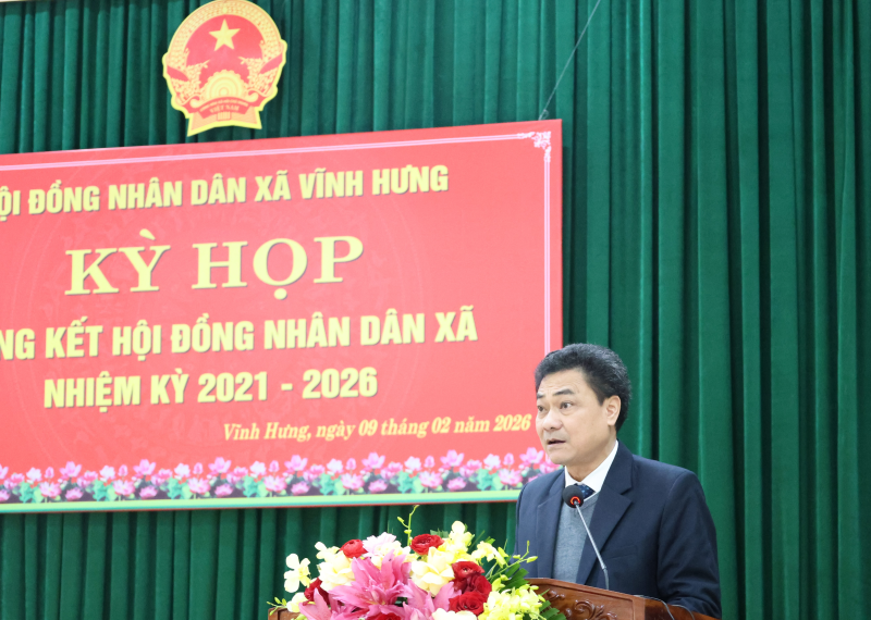 Chiều ngày 09/02/2026, HĐND xã Vĩnh Hưng tổ chức Kỳ họp tổng kết nhiệm kỳ 2021–2026 nhằm đánh giá toàn diện kết quả hoạt động của HĐND xã trong suốt 5 năm qua và đề ra phương hướng, nhiệm vụ cho giai đoạn tiếp theo.